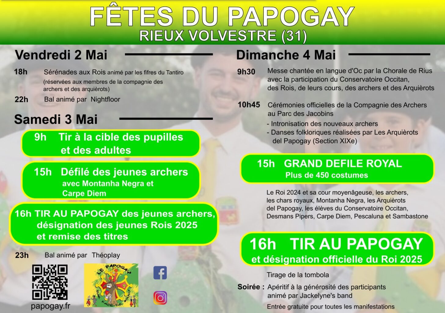Fêtes traditionnelles du Papogay Bienvenue sur le site rassemblant textes, histoires et informations, bref, tout pour passer de belles fêtes du Papogay. Retrouvez le programme des fêtes ici : Accéder au programme Voici les partenaires du Papogay 2025 :